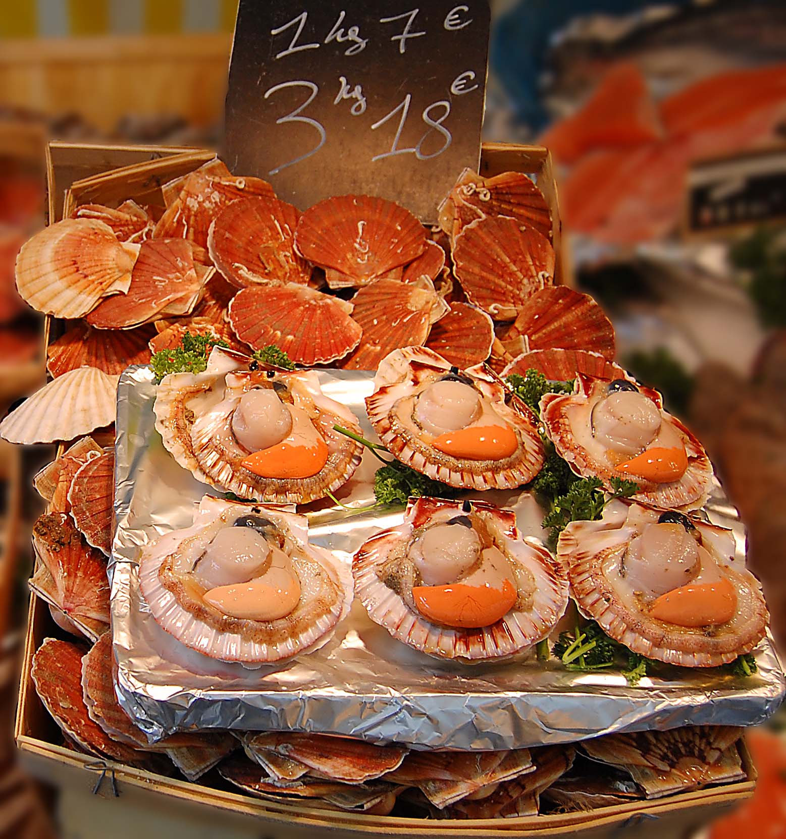 Scallops…Oh how I love scallops! Rich and buttery, they come in their very own serving dish as if the sea gods knew how great they would be to eat! However, in France they are sold in the shell, with the coral attached (which I love!) and I was not sure how well that would go over with the rest of the folks eating dinner.