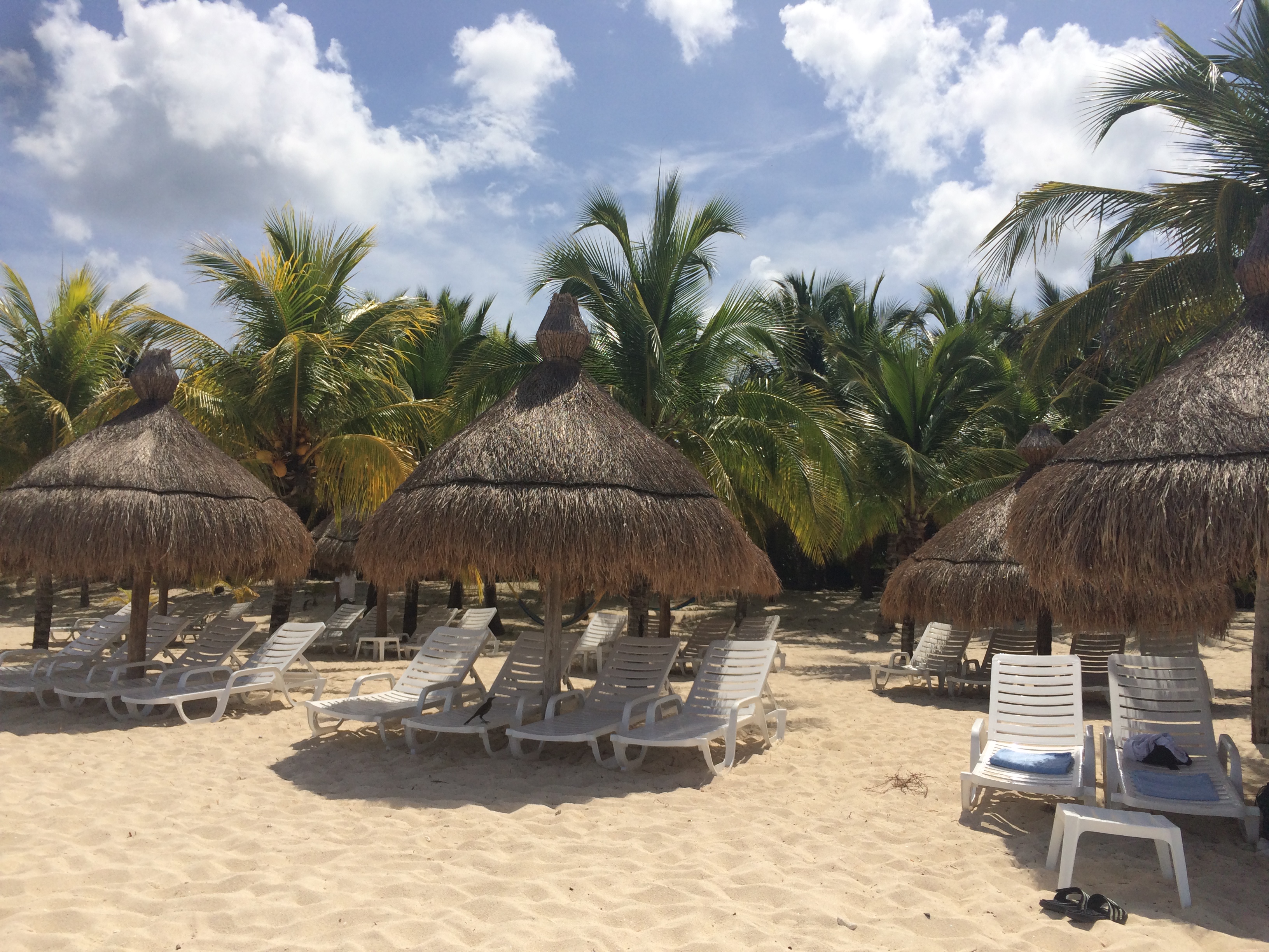 After a relatively short taxi ride, we arrive at Nachi Cocum. I think we were the first people there for the day. We were given wristbands color coded based on our drinking ability and shown to our palapas for the day. If you are considering Nachi Cocum, let me tell you, it is absolutely gorgeous! Soft sand, palm trees, gentle ocean…pure paradise.