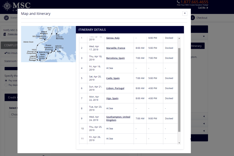 We chose this cruise for the ports and to try a new line. MSC has the status match program which also helped. This cruise was from Genoa, Italy to Kiel, Germany with stops at Marseille, Barcelona, Cadiz, Lisbon, Vigo, and Southampton.