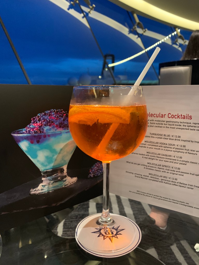 Service: Across the board service was friendly and professional. Never had an issue there. My only tiny (kinda funny too) issue was in the Sky Lounge. This is a gorgeous bar on Deck 18 reported to serve “molecular” cocktails. As a huge fan of Carnival’s Alchemy bar, I had to give this one a shot as well. I ordered the Turquoise Blue. It was supposed to look like this: