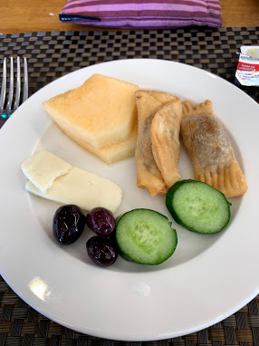 Today officially begins our tour. We actually do make it to breakfast today so I was able to see what was available on a Middle Eastern breakfast buffet…mostly. Now please understand that I do not like American breakfast food. Not eggs, not pancakes, not waffles, not cereal, not donuts, not oatmeal, not yogurt, not at all (Sam I am!!). However, I really enjoy European style breakfast, which is mostly meat and cheese…two things I can always get behind! So imagine my surprise when, in addition to the European style breakfast they also offered my new favorite, Moutabal…smoked eggplant dip, olives, cucumbers, and some sort of fried meat pie thing. All AMAZING!!