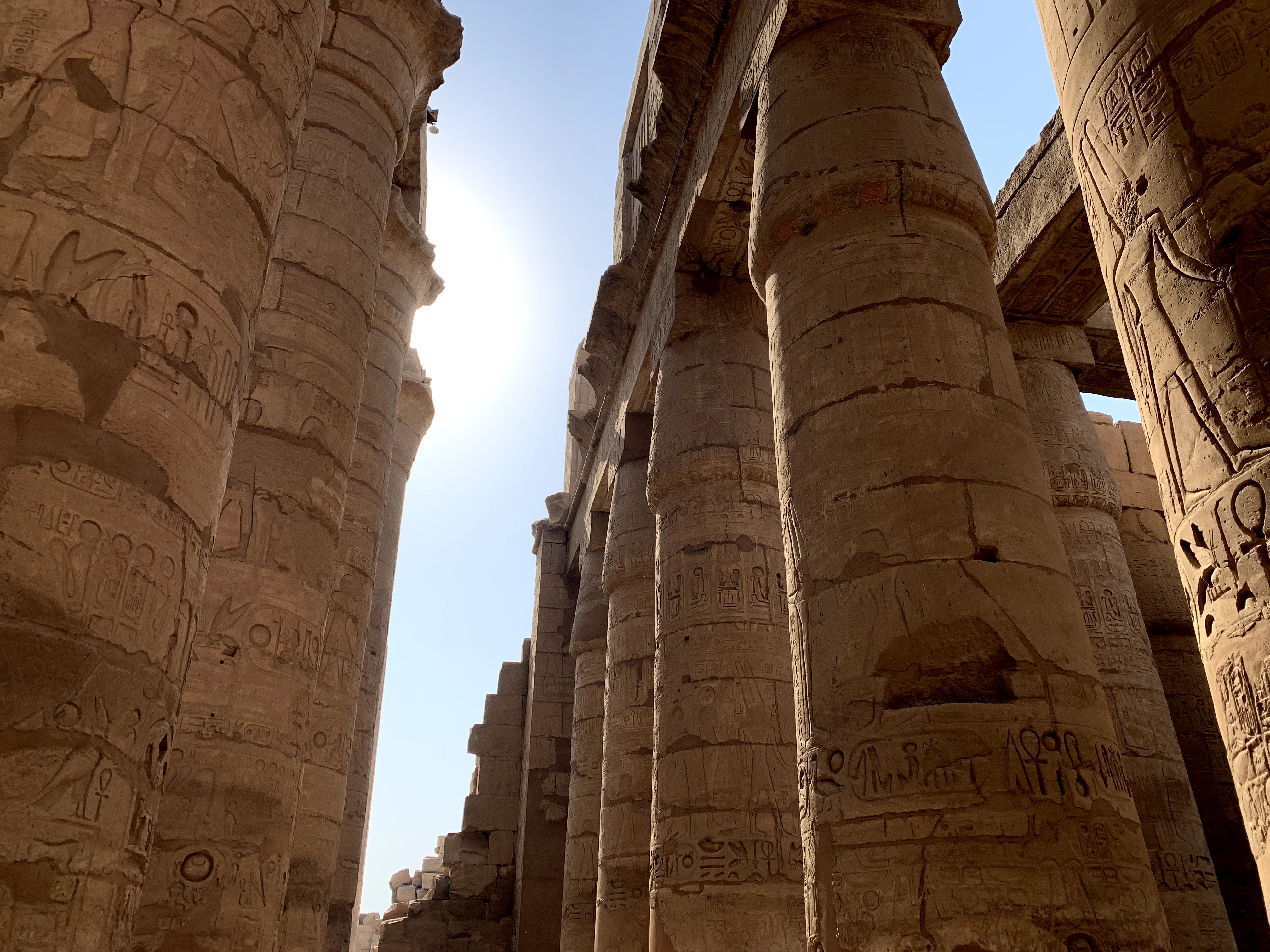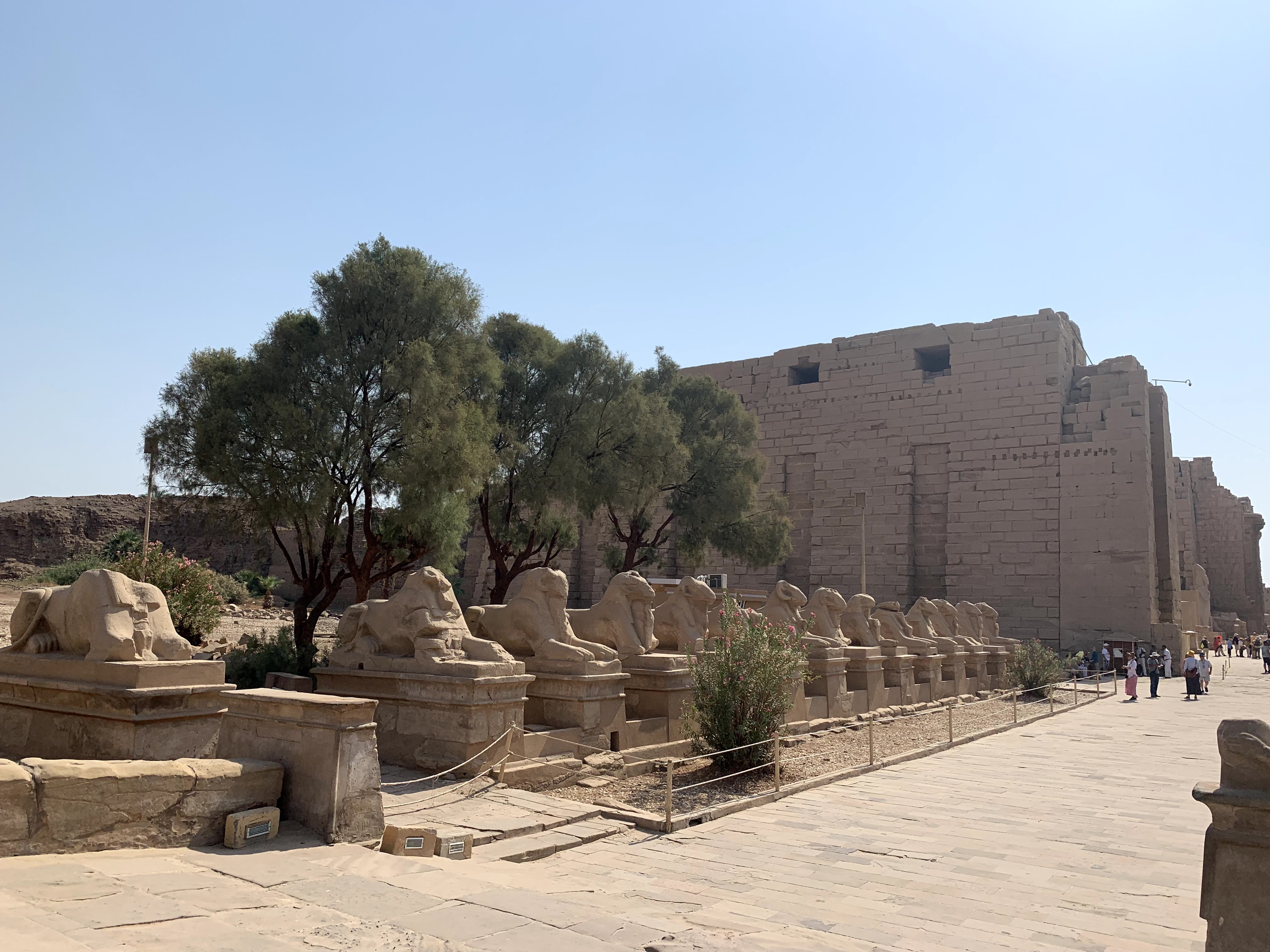 What is does not have, is shade. Which is why we were there by 8am directly after our flight landed. After a brief orientation, we headed into the complex. The entry processional is flanked by sphinxes on both sides that once ran all the way to Luxor Temple, roughly 1.5 miles. This was the road used by the pharaohs to take the statues of the gods that resided at Karnak to the temple at Luxor for the annual Opet festival (more on that when we get to the Luxor Temple).