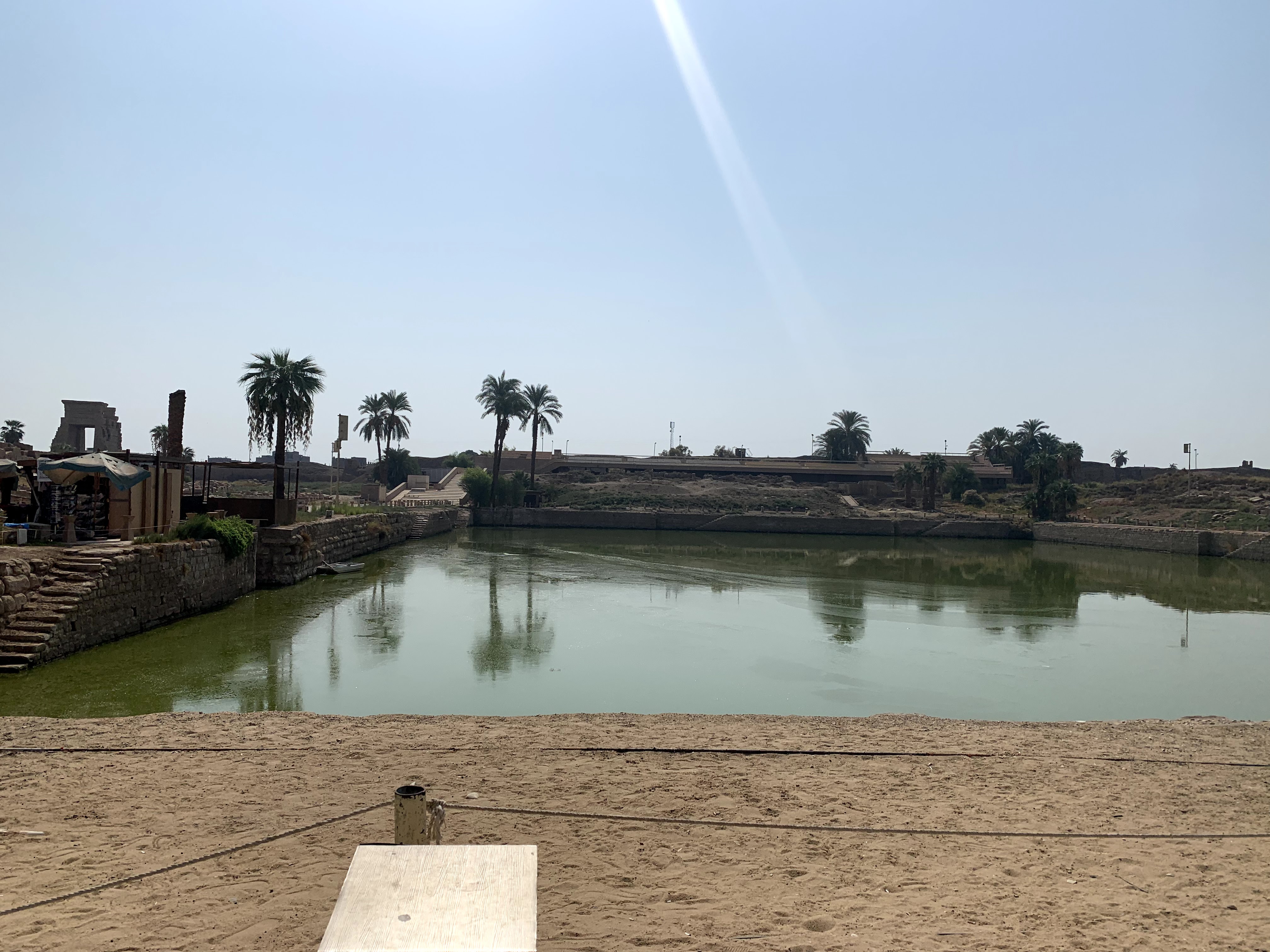 A ceremonial Sacred Lake still lies within the complex, it is actually a salt water lake but sadly, without all the ceremonies, the lake looks a little worse for wear. I offered to re-enact the festival of intentional drunkenness, a tribute to the Goddess Sekhmet, but since it was only 8:30am, we decided to pass for now. Probably smart, I would hate to fall in that icky green sacred lake!