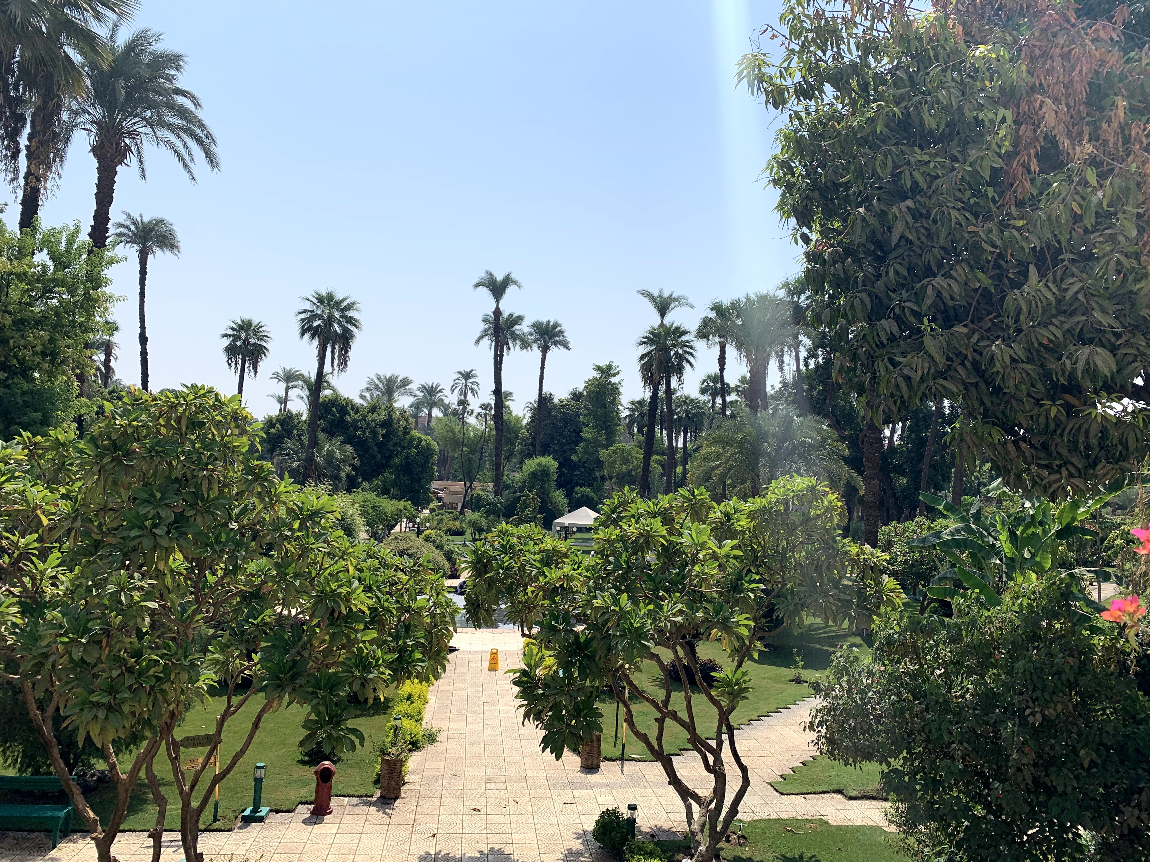 Yep, that’s right! Right here in the beautiful Winter Palace in Luxor Egypt, I was able to find a local wine tasting. The Royal bar, an absolutely beautiful space with red walls and dark wood, with super comfy leather couches offers a wine flight with three wines in your choice of red or white. You know I like both, but with the heat, I chose white.