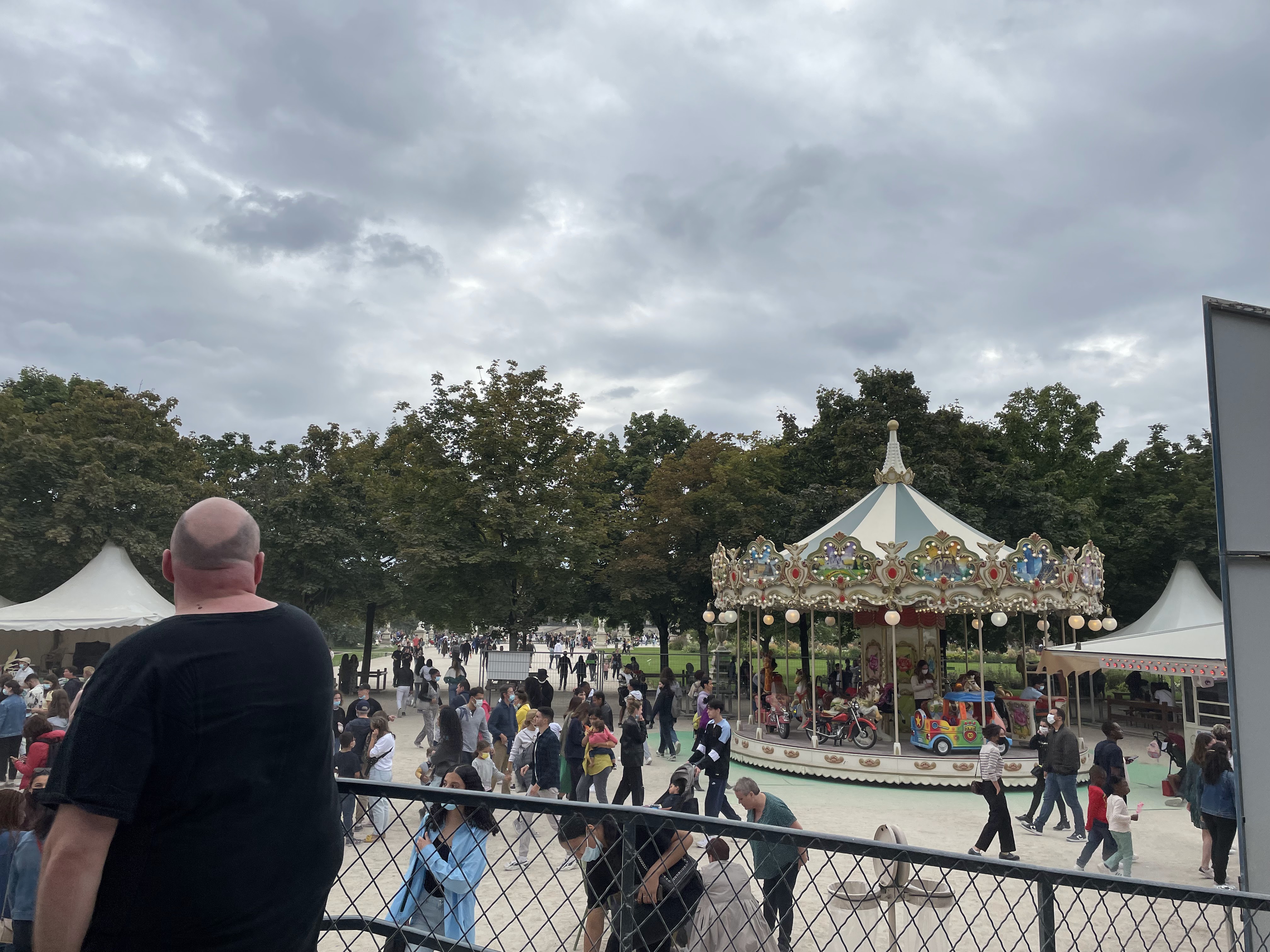 Our first night we were pretty jet lagged so we just wandered over to Rue de Rivoli where there was a fair going on. It was crowded! Masks were required and everyone needed to show their Pass Sanitaire in order to ride any rides. We had not yet converted our US vaccine cards to the EU Pass Sanitaire yet but the ride operators took the CDC vaccine cards with no issues.